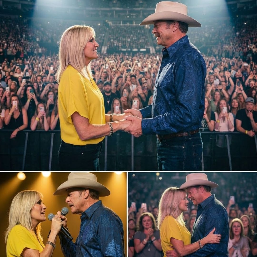 There wasn’t a big announcement. No dramatic build. Just a small smile—almost like Alan Jackson was trying not to laugh at how nervous he suddenly felt. He looked out across the sea of faces and said something simple about how some people keep you steady when the world is loud. Then Alan Jackson glanced to the side of the stage, lifted a hand, and called for the person he kept referring to as his “rock.”