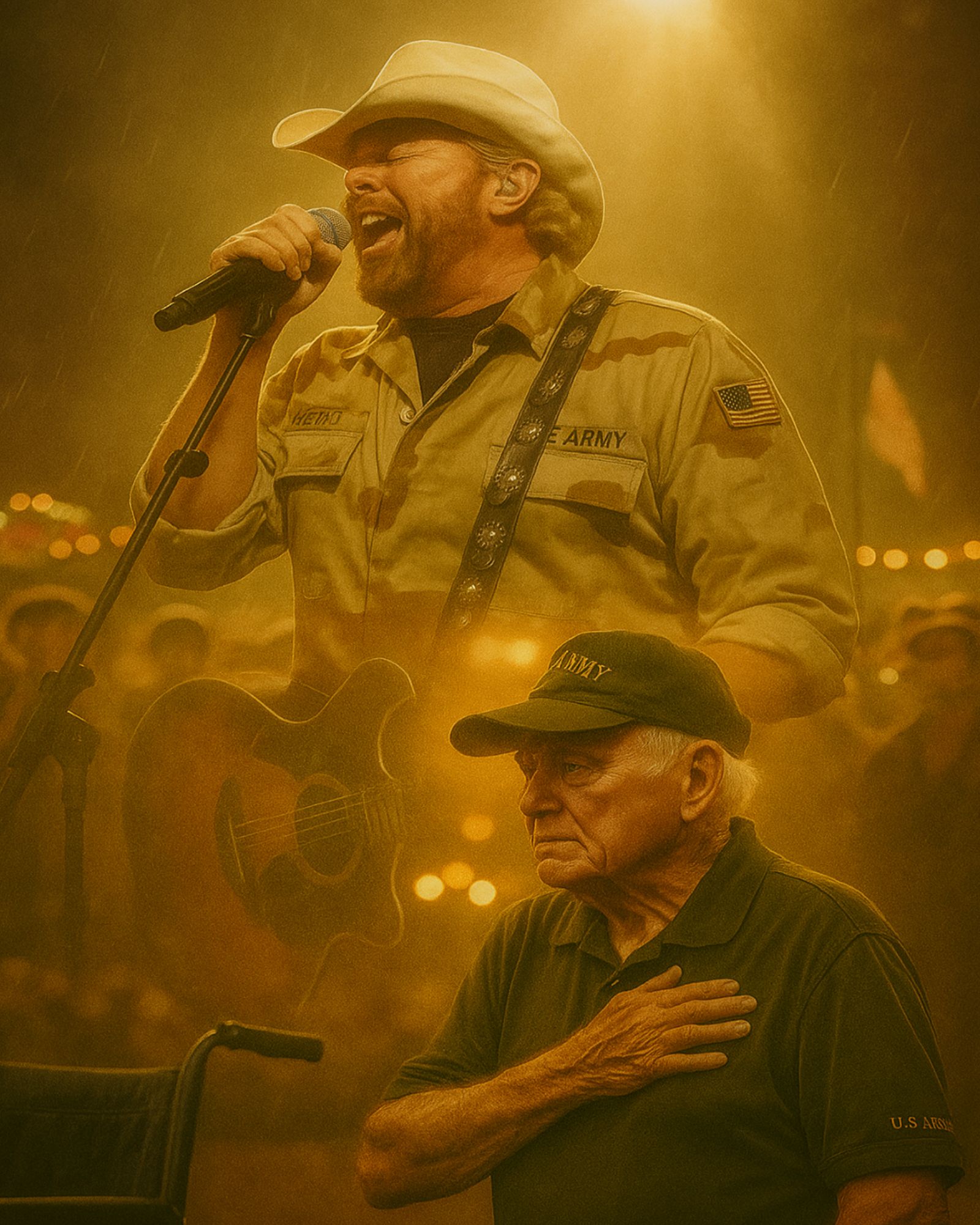 There were no pyrotechnics, no spotlight, no encore — only two men standing shoulder to shoulder, singing a song that meant something far greater than fame or applause. When they finished, Toby tipped his hat and gave the veteran a quiet nod. The crowd didn’t cheer right away. They couldn’t. They were too busy feeling the weight of the moment.