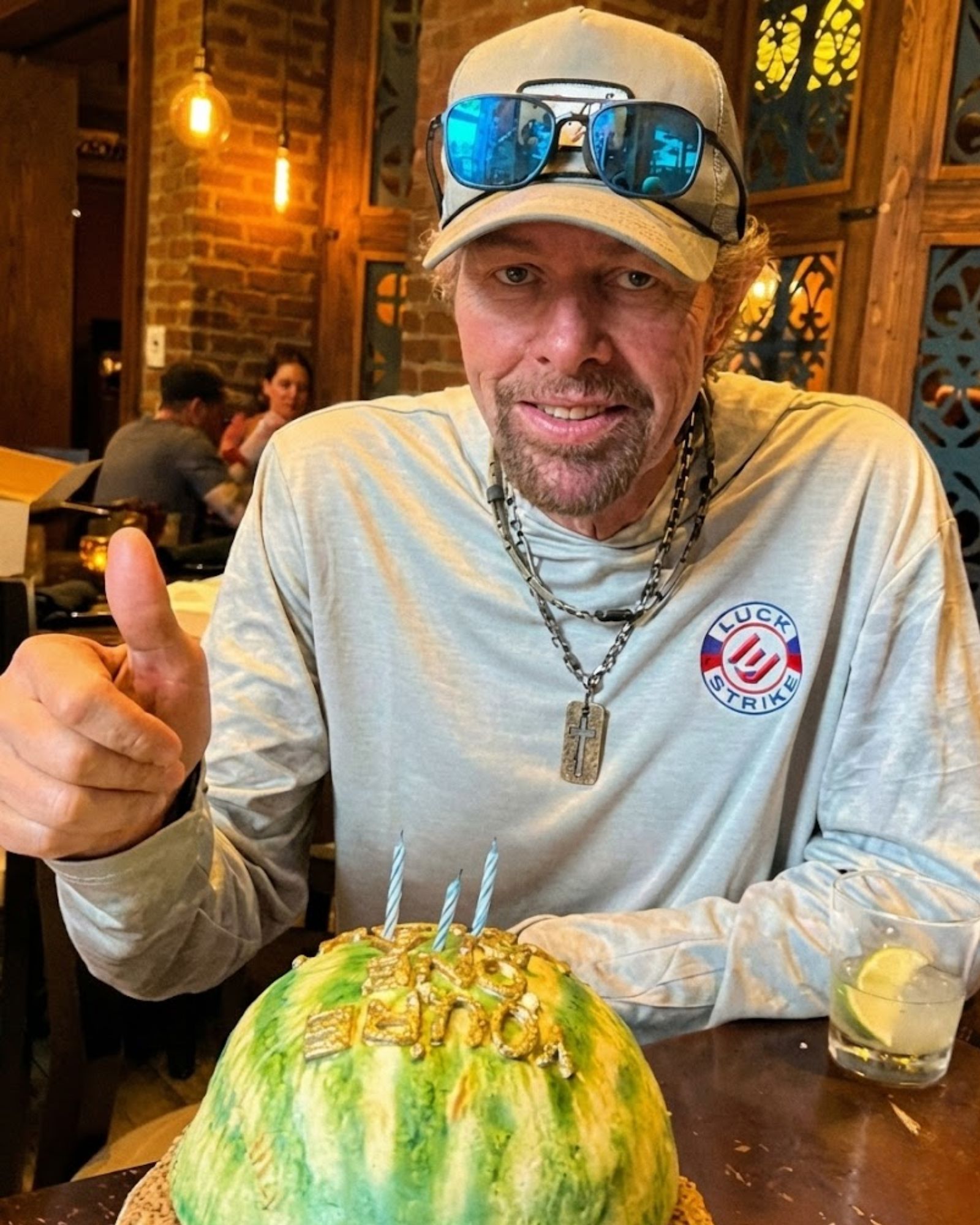 Toby Keith’s final birthday was not spent under the bright lights of an arena or before a sea of adoring fans. Instead, it unfolded quietly in the sanctuary of his own home, far removed from the spotlight that had followed him for decades. The scene was humble yet deeply moving—no celebrity spectacle, no grand production. Just a simple watermelon-shaped cake, a glass of water, and the few loved ones who truly knew the man behind the legend.
