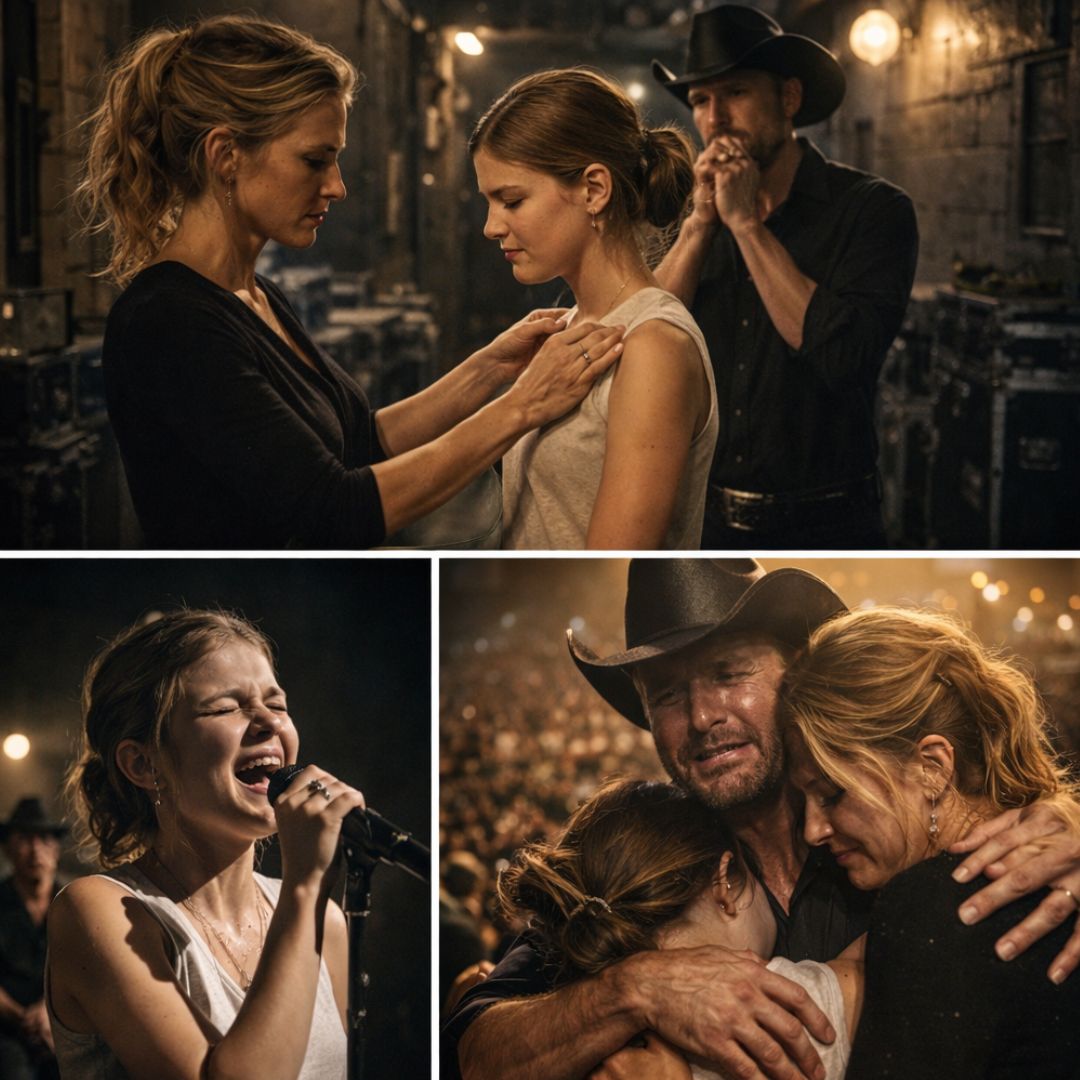 In a narrow hallway, Faith Hill adjusted her daughter’s sleeve with careful hands. No stage directions. No reminders about timing. Just a soft whisper meant for one person only: “You don’t have to be perfect. Just be real.”