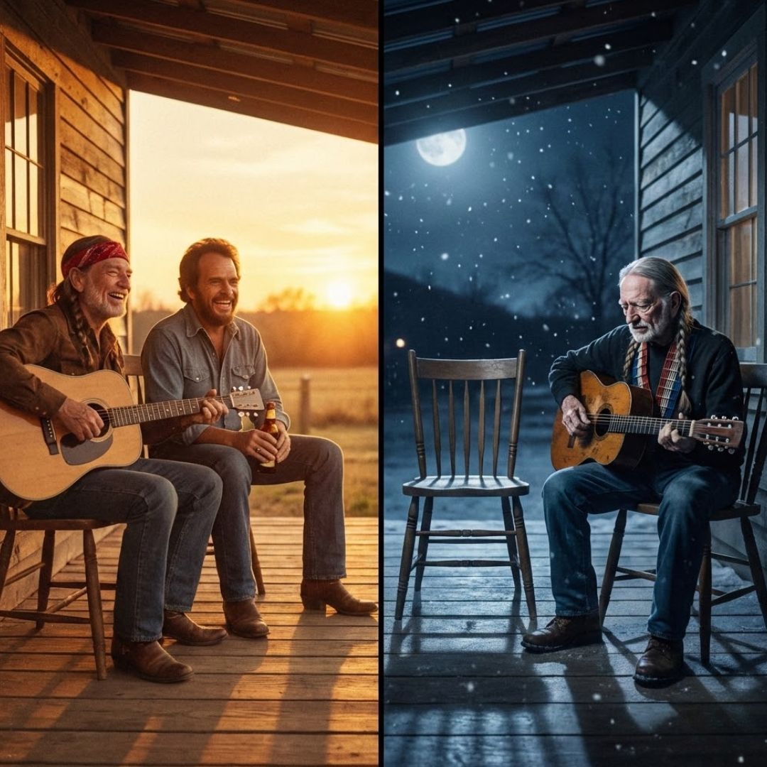 A few nights later, long after the news cycle had moved on, Willie drove a familiar road. No tour bus. No entourage. Just him, Trigger resting beside him, and memories riding shotgun. He stopped where Merle used to sit and talk — about songs, about life, about all the things musicians say when the world finally leaves them alone.